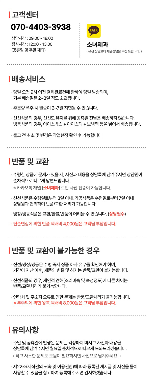 · 상품 불량 사유와 사진을 남겨 주시면 빠른 처리가 가능합니다.